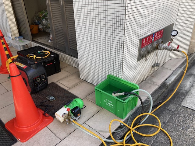今回は名古屋市北区(マンション)にて連結送水管耐圧試験を行いました。
